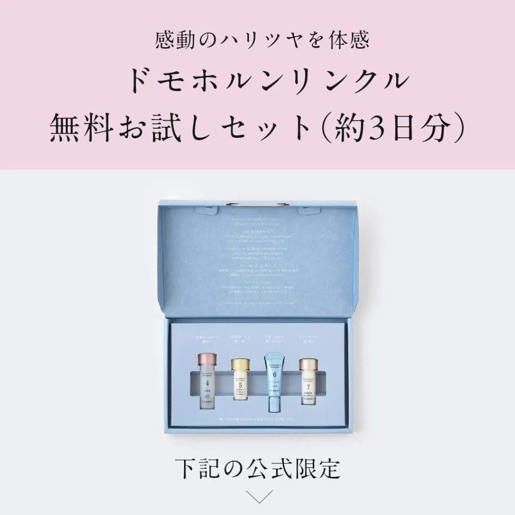 まずは約3日分の無料お試しセットでドモホルンリンクルの本気を試してみてはいかがでしょうか?