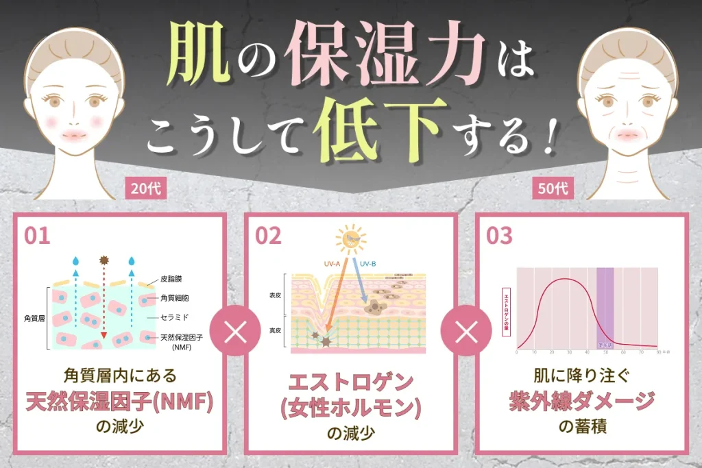 年齢とともに肌の”水分保持力”が減少していくから。