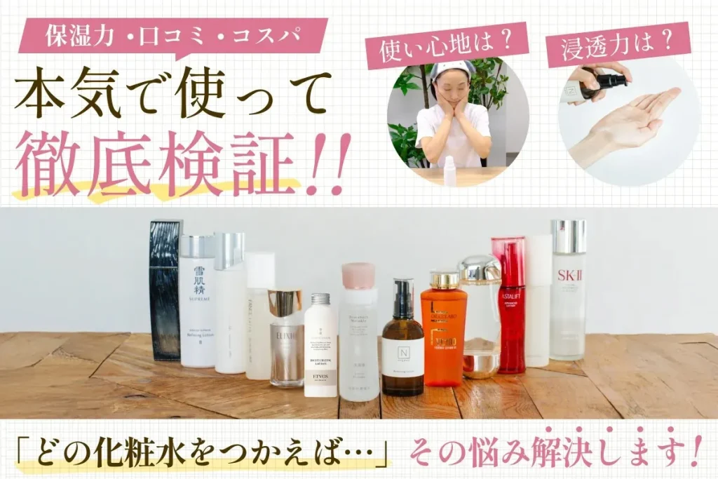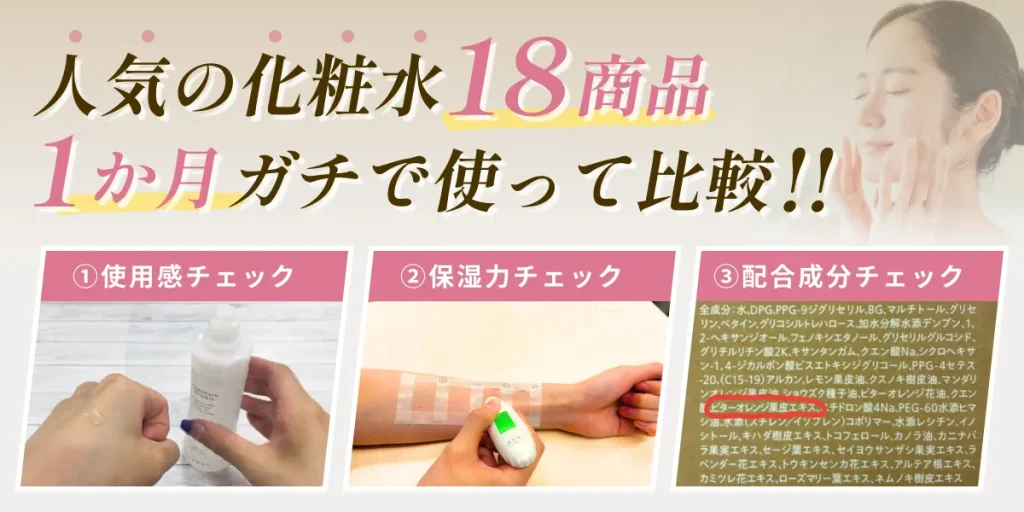 今回私たちコスメ研究所は、SNSや雑誌で話題沸騰中のエイジングケア*化粧水18商品をガチで使って徹底比較!