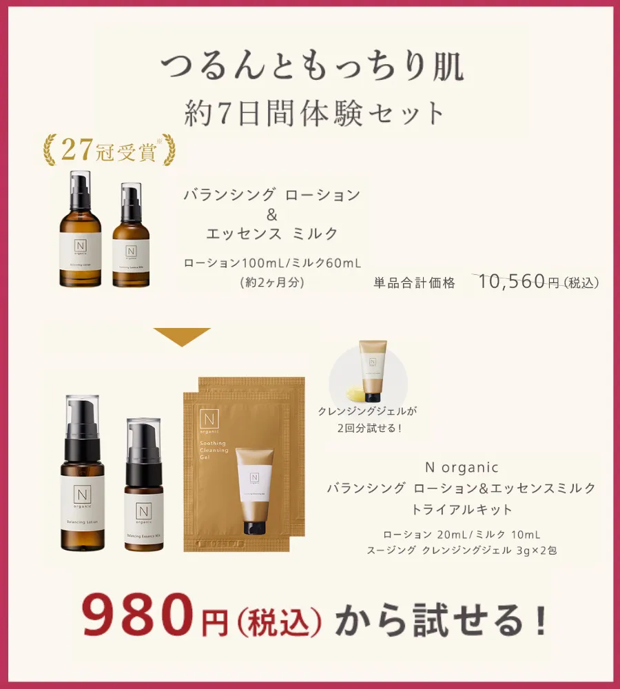 まずは、本品を購入する前にお試しセットを上手く活用して、自分の肌に合うか試してみることもポイントです!