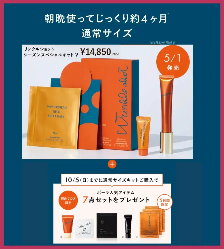 約4カ月間※2のリンクルショット メディカル セラム N※3だけじゃなく、本品と同価格でポーラ人気アイテム7点セットがもらえちゃんうんです!
